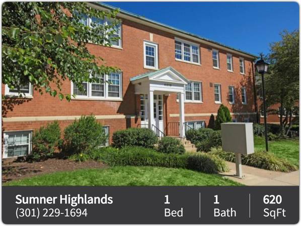 Description: Welcome to Sumner Highlands located in Montgomery County in Bethesda, MD. We offer spacious one and two bedroom apartment homes for rent. Our community is close to restaurants, shopping, and Downtown Washington DC. We also have easy access to the Capital Beltway, Downtown Bethesda, and Northern Virginia along with Ride on Bus 23 and D5 Metro Bus service (Friendship Heights Metro Station) allows you to live the best of both worlds.