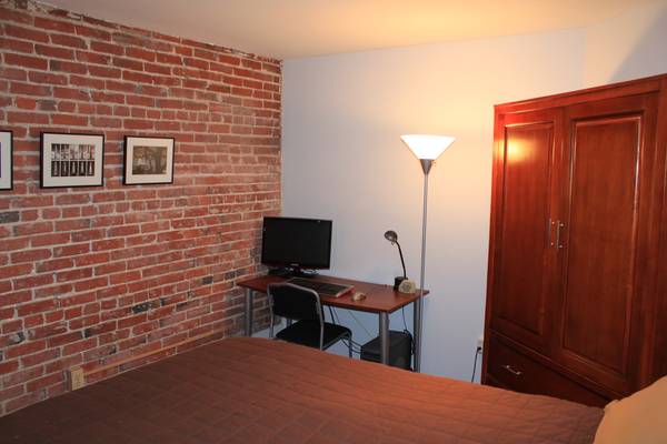 - Exposed brick in bedroom