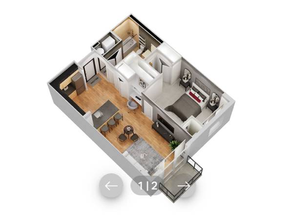 This one bedroom apartment features a large master bedroom with walk-in closet.