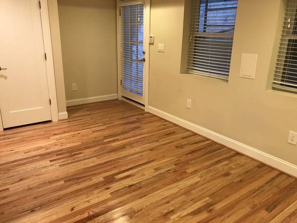Modern, Separately metered, legal, English basement apartment with high ceilings in Columbia Heights row house. One bedroom, one bath. Open kitchen/living room floor-plan. In-unit front loading washer and dryer. Central A/C and heat. Recessed lighting. Hardwood floors. Stainless steel appliances. Granite counter tops. Gas stove/oven, built in microwave. Electric water heater. Alarm system. Security gates/window bars/security film. House and apartment were completely renovated in 2010. Perfect condition.