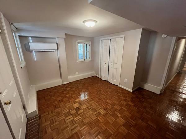 This charming lower level apartment is a must see! This unit encompasses the entire lower level of a converted historic row house in the NW DC neighborhood of Adams Morgan. Features beautiful parquet flooring, multiple window, and a private outdoor area! The kitchen is well-equipped and offers a lot of cabinet storage. The bedrooms are nicely sized and offer good closet storage. The bathroom is located off the hallway, and the in-unit laundry closet offers additional storage space.