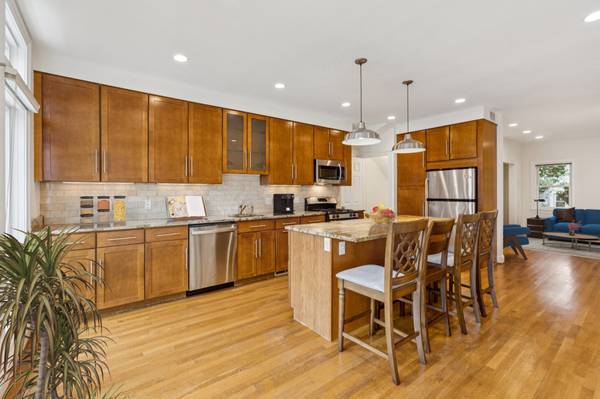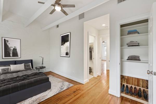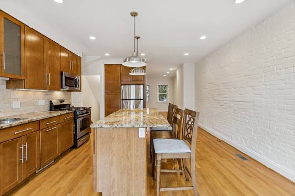 Gorgeous 3 bedroom 2 bath spread over 3 levels on a lovely quiet one-way street. Only 2 blocks to NoMa Metro, Union Market, Trader Joe’s, and steps to Whole Foods. Main floor has entrance hall with coat closet, living room with gleaming hardwood floors and exposed brick. Enormous combo dining / gourmet kitchen with huge island, granite and stainless, gas range, and sliding glass doors out to deck. Upstairs front bedroom has lofted ceiling, exposed beams, and brick, and walk-in closet, plus additional shoe closet. Equally large second bedroom has large closet, hardwood floors, and ceiling fan. Spacious all-white bathroom with double vanity, subway tile and bathtub / shower. Linen closet. Lower level has small desk/TV area with built-in bookshelf, plus full bath with shower, and large walk-out bedroom with exposed brick and sliding doors to covered porch. Full size washer/dryer and kitchenette with refrigerator and microwave. Large storage closet under stairs. Rear yard can be used as either patio or off-street parking and is fully fenced. Available immediately. One-year minimum lease. NO PETS.