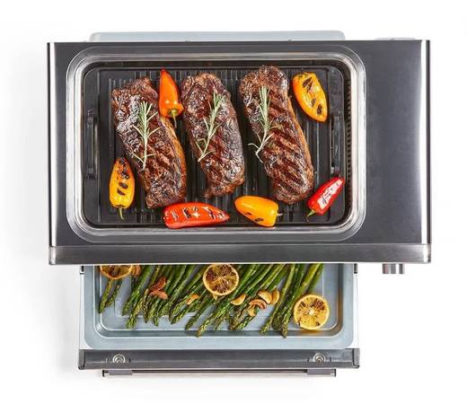 Discover the Emeril Power Grill 360 Plus, 6 n 1 Smokeless Grill and Air Fry Toaster Oven, the electric indoor grill and air fryer oven from America's most beloved chef, Emeril Lagasse. With the Power Grill 360, it's easy and convenient to enjoy outdoor grilled taste and flavor on your indoor countertop without all of the smoke! This electric indoor grill and air fryer is built with smokeless technology, this is because the Smoke Extracting System makes indoor grilling possible by helping to remove virtually all smoke and keeping it out of your kitchen. You can Air Fry, Roast, Toast, Bake, and even Dehydrate making this grill from Emeril Lagasse one of the most versatile appliances in your kitchen!