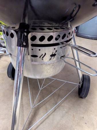 Got a Weber Charcoal grill for sale. Only used it for a few years and it's in great shape. Don't remember the exact size, but I think it's the largest one you can get at home depot. It has a thermometer in the lid, an ash catch, adjustable intake/exhaust, and a flip-up side of the grill for easy refilling of coals mid-cook. This also comes with a Charcoal Chimney for easy coal lighting and dumping.