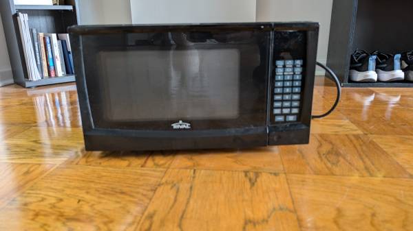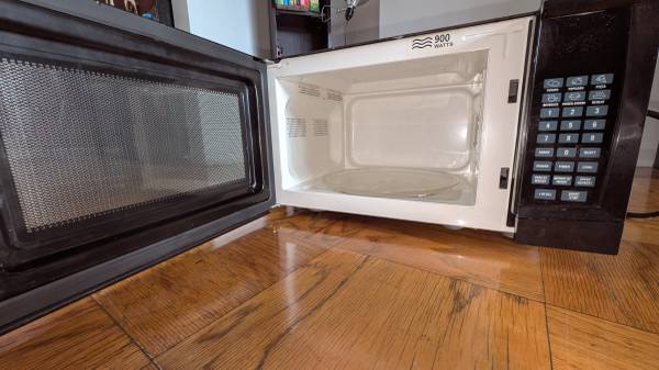 Excellent condition Black 900-watt Rival 0.9 cu ft Microwave Works perfectly