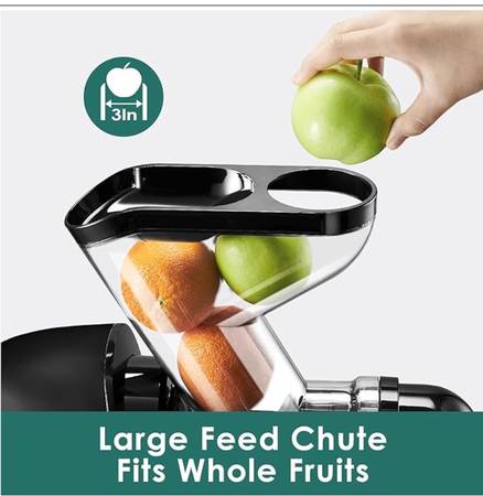 - Extra-Wide Feed Chute: The Fretta slow masticating juicer's 3-inch-wide feed funnel allows you to juice large fruits and vegetables without the need for tedious trimming. The nutritional value of the juice will be retained by decreasing the amount of chopping. Advice: This juicer does not remove fruit peels automatically. The image only shows the size of the feeding chute. To increase flavor, it is recommended that the skins be removed before juicing