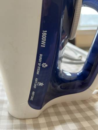 Brand new Rowenta iron, never used. Accessteam model DW 2170, stainless steel base. 1600 W. Steam, burst of steam, anti-drip, anti-calc features.