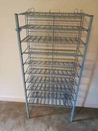 STURDY, EASY TO MOVE, HEIGHT ADJUSTABLE FOLDABLE FLAT OR SLOPPY SHOE RACK OR CAN BE USED IN GARAGE, ART OR IN CLOSET ORGANIZER ASKING $250 OBO
