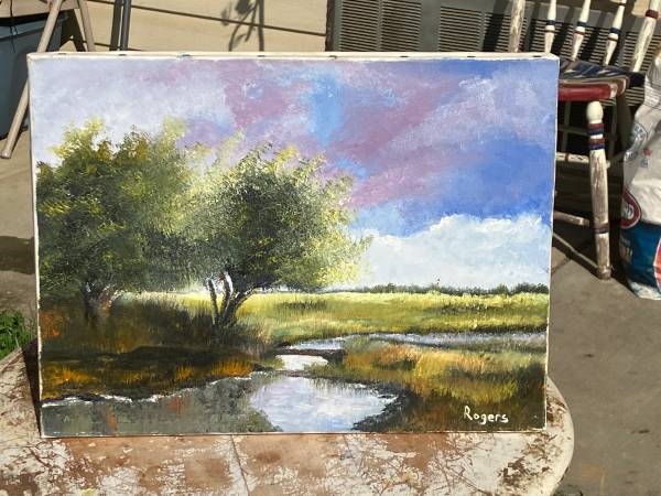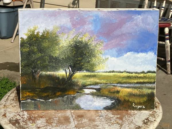 Impressionist summer landscape oil canvas painting measures 16x12”