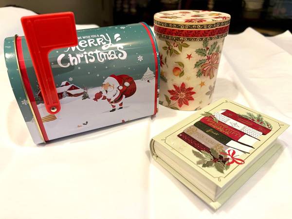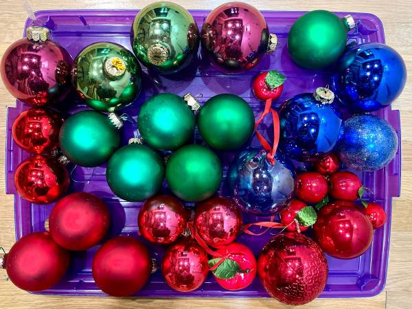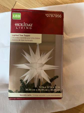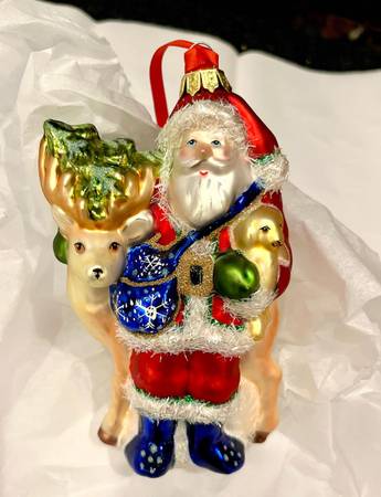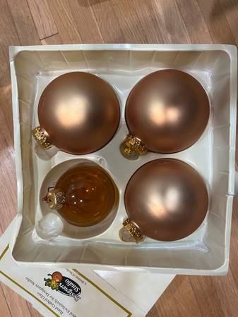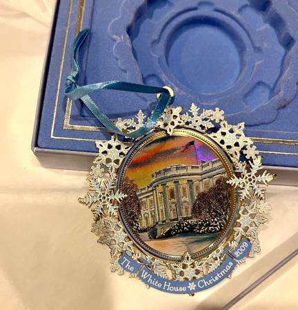 Everything but the tree… Sold as one lot, the collection includes: 10+ large figurative ornaments, official White House ornament, several oversized mouth blown ornaments, more than 6 dozen multicolored balls, dozen glitter candy canes, miniature apples, lighted Moravian Star topper, 2 brand new stockings (red velvet backing) with hangers, 3 strands of 25 ft multicolored lights, 25 ft white lights, blue icicle lights, 4 extension cords, 3 plug-in timers and brand new gift boxes. Sold as a single lot.