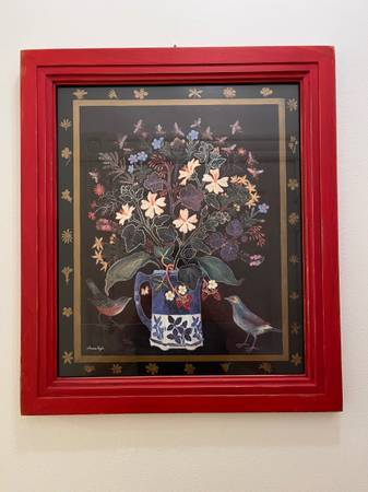 Framed floral art prints. Price listed as set of two, or $20 for each individually.