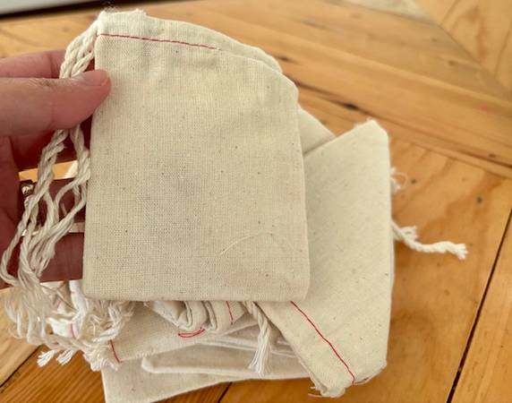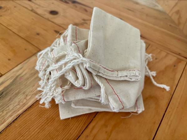 A whole bunch of drawstring bags. I'd used some for mailing out jewelry and now selling the rest. They're 100% linen and unembellished, so feel free to use them for whatever. Please come by for...