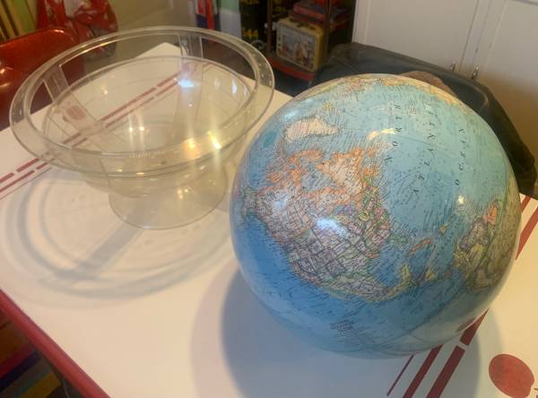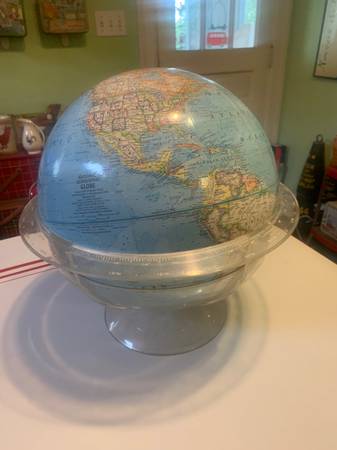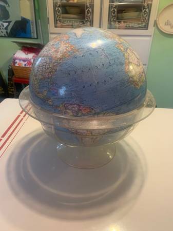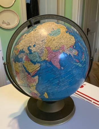 $40 for both 1973 dated 12” Globe with lucite base. USSR, 2 Germanys, 2 Vietnams, 1960 ish 12” globe MCM