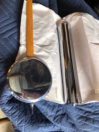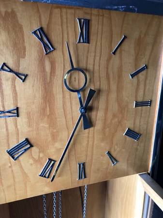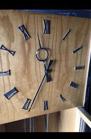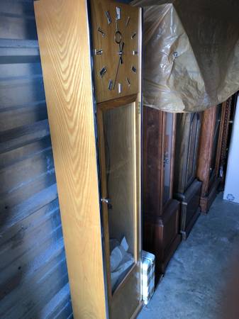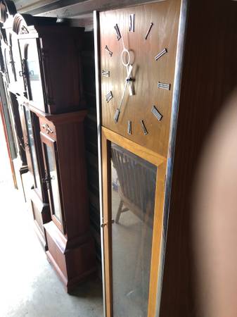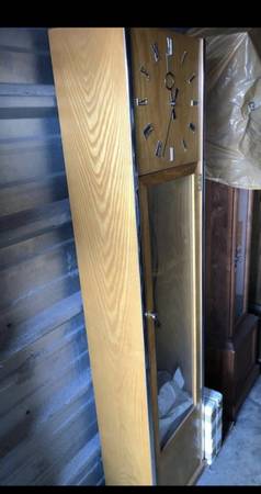 Good day. Up for sale today is a very nice looking Mid Century Modern Oak and Chrome Grandfather Clock. It comes with the original 3 chrome weights and chains, with a chrome and oak pendulum and...