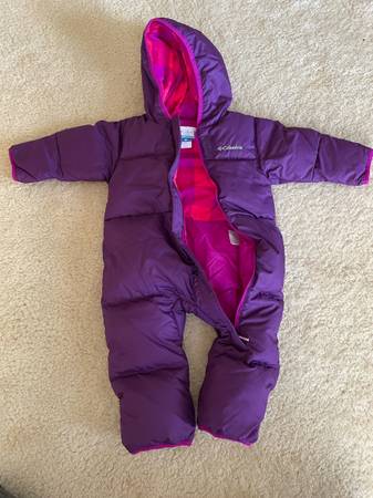 Nearly brand new Columbia Sportswear purple colored bunting, size 12-18 months. My daughter only wore this two times when we lived in New York and she grew out of it before we had a chance to use it...