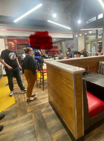 Very large , sets more than 80 inside and it can adjust To add more 25 sets, Front patio on the main high traffic street can sets up to 44 sets /customers, will be perfect if you want to add Hooka . Google review 4.7