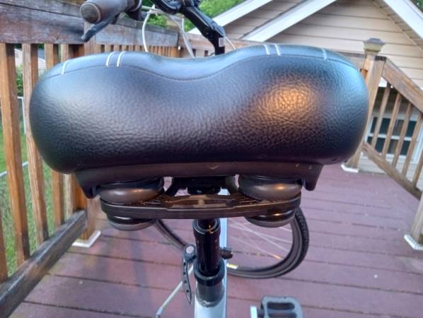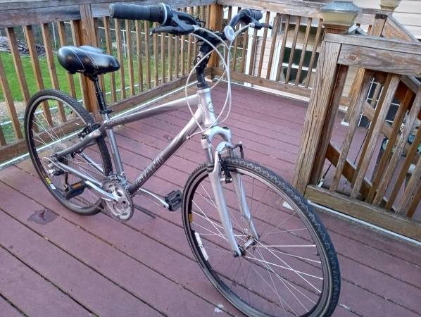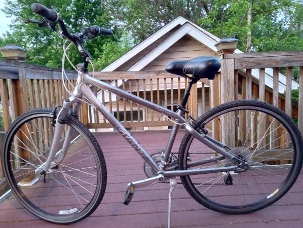 This beautiful in gray and silver Giant Cypress DX Road Bike is ready to ride and in excellent condition. This bike is well equipped for daily commuting with a Greenfield kickstand, fully adjustable stem, suspension fork and seat post, comfort tuned Giant saddle, platform pedals, and a cell phone holder. I am asking for 260 or best offer for the bike.