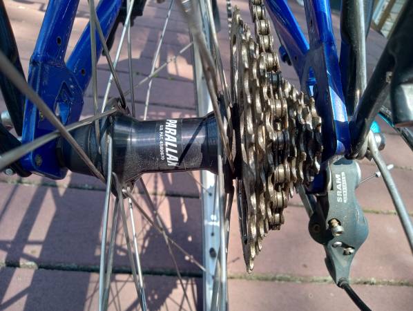 For sale is the legendary Rans Vrex recumbent bike. This is the first short wheelbase recumbent that RANS ever built. The V-Rex was a collaborative effort between three people that are now known as some of the biggest names in the recumbent industry. One was Randy Schlitter, the owner of RANS. Another player in the V-Rex triad was John Schlitter, Randy’s brother and now one of the principals at Bacchetta. The third member was Mark Colliton, recumbent designer extrodonair and currently another one of Bacchetta’s key employees. As it always has been, the current V-Rex is made from 4130 chromoly tubing (now supplied by Reynolds).