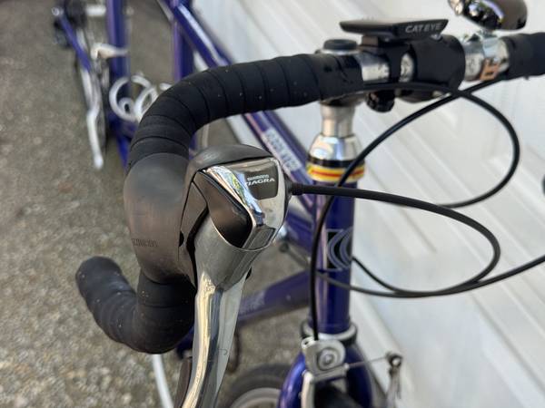 Beautiful CoMotion Speedster Tandem Road Bike in great shape! New tires, bar tape and tuned up. 27 speed with Shimano Tiagra STI index shifting. Powerful V brakes make control and stopping easy. Unlike many tandems that can feel too flex, CoMotion make rigid frames that makes if feel like you are riding a single bike with you and your riding companion working in unison. Selling as my son has grown enough to only want to ride his own road bike.