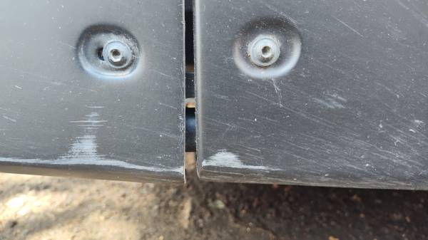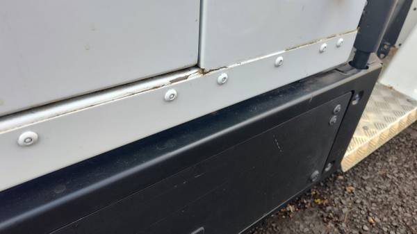 Photographs show scrapes and a gash on Courier's right-side of vehicle. Photographs also show cracks formed in the folds of the vehicle's doors. All cosmetic.