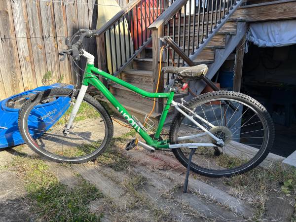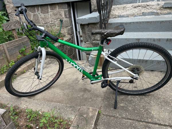 Woom bike size 6 (26” for age 10-14). Approximately 5 years old and lightly used but needs a new seat and some upkeep like checking innertubes and brakes.