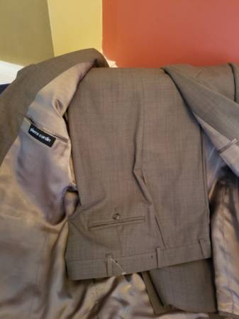 Men's Pierre Cardin Suit, never worn/altered, Size 42 Regular Jacket, 36" Waist pants (need hemming, inseam 35", straight front), tan/light olive pattern, $60/Or best offer.