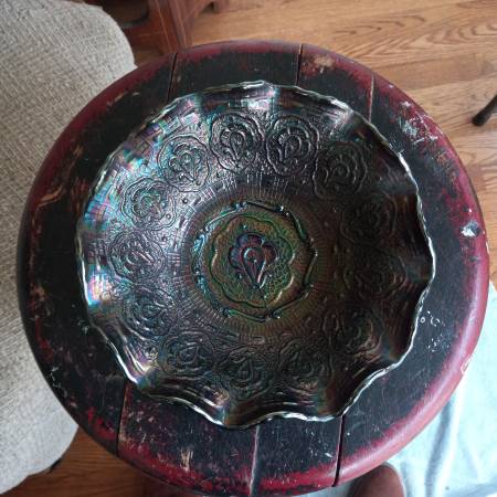 As pictured. Perfect condition. Was my parents' Info on Fenton Art Glass Co.: https://en.wikipedia.org/wiki/Fenton_Art_Glass_Company