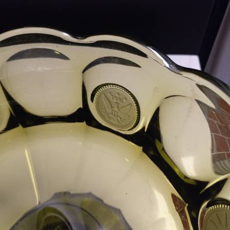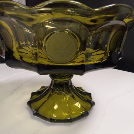 It was my grandmother's. I can't keep everything. 8 1/2" diameter bowl; 6 1/2" high. No chips or cracks. It's ready for a new home. Information on Fostoria Glass Company here:...
