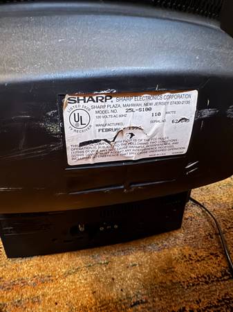 Selling a used 25" Sharp CRT TV. Perfect for retro gaming. Has two RCA inputs. Used but tested recently and still works perfectly fine. Does not include remote. ~60 lbs. Must pick up.