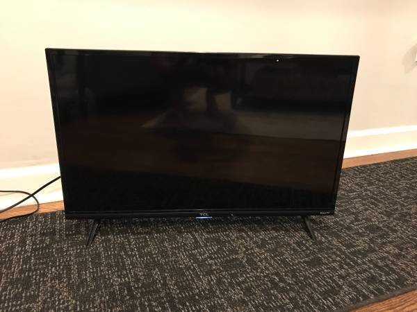 TCL 32 inch with Roku Smart TV. The applications have been removed, the TV is ready for a new owner. You can connect to wifi and download any application. The TV works well, the colors are bright, no screen issues. It comes with the original Roku remote. $70 obo