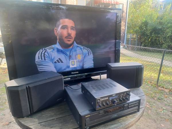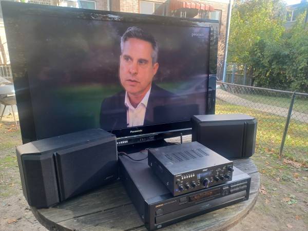 50 INCH PANASONIC 1080P TV WITH ROKU REMOTE 200 WATTS PYLE BLUETOOTH RECEIVER ONKYO DX-C220 6 DISCS CD 💿 PLAYER BOSE 201 IV SPEAKERS GREAT WORKING CONDITION CASH OR CASH APP ACCEPTED DOOR PICK UP IN...