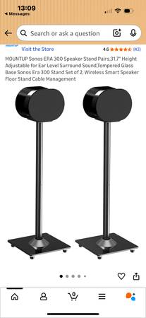 Two 31.7'' height adjustable, tempered glass base speaker stands that fit Sonos ERA 300 speakers.