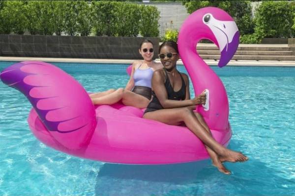 • Size: 6 ft. 10.5 in. x 6 ft. 8 in. (2.10 m x 2.03 m) • User Capacity: 2 adults • Weight Capacity: 397 lbs. (180 kg) • Easy to inflate, deflate and store Contents: • 1 ride-on, 1 repair patch