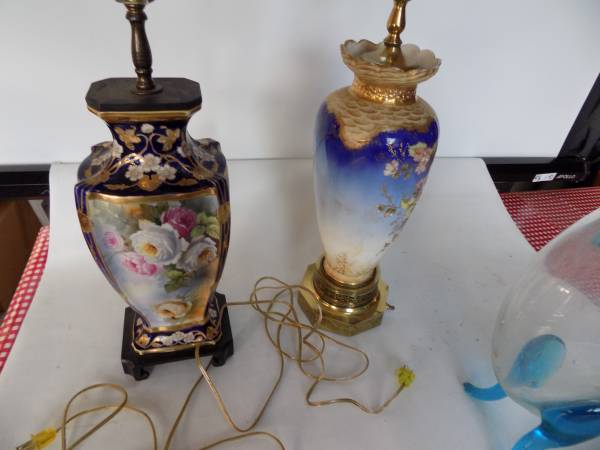 i have 2 mid century modern lamps that belonged to my grandparents 1 is a floor lamp the other is a hanging light both work fine they have not been cleaned in many years no broken pieces, the shades...