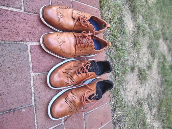 Two pairs of 8.5 Cole Haan very comfortable dress shoes for men. Used but in good condition.