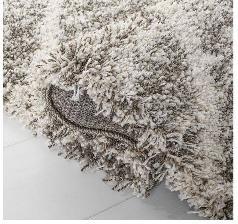 Selling a set of 3 matching area rugs – modern gray with ivory stripe pattern.