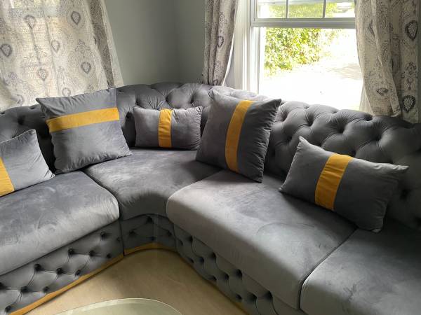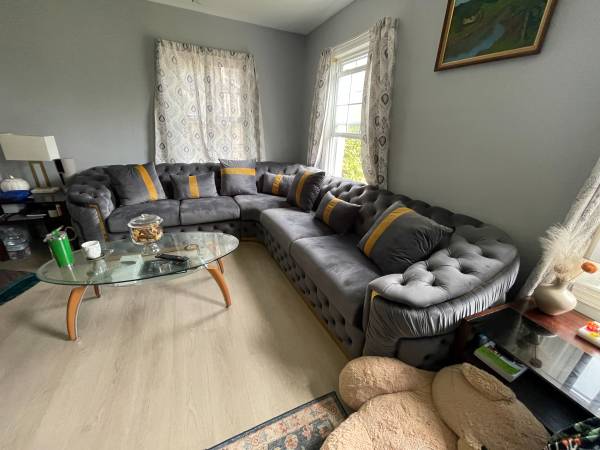 Only less than 2 months old Sectional Sofa in new condition for sale. Purchased for $3,800 and selling for $2,500. We are moving and can't take it with us.