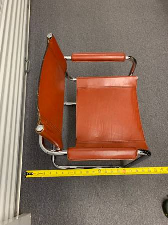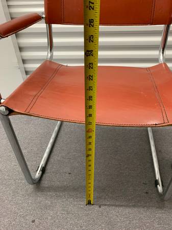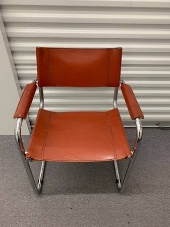 This MCM Bauhaus-style chair was designed features tubular chromed steel frame and beautiful burnt orange leather seat, back, and armrests. Knoll, DWR, CB2, designer, mid century, midcentury,...