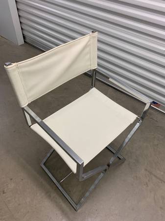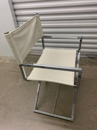 Gorgeous mid century modern director’s chair with steel chrome plate square-tubular frame designed by Robert Kjer Jakobsen for Virtue Brothers of California.