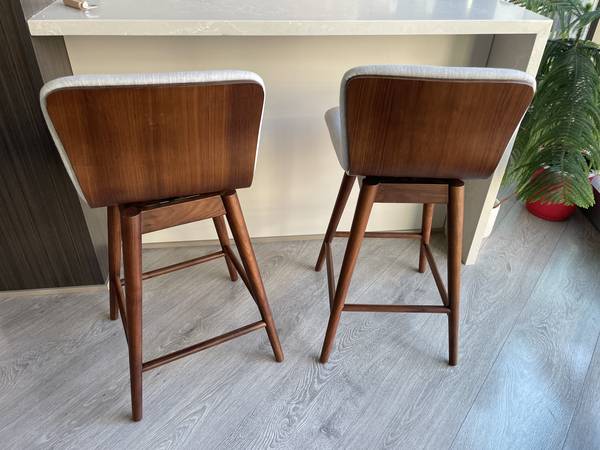 $500 for the pair. Compare at $349/each new: https://www.article.com/product/22612/sede-swivel-bar-stool-walnut-and-mist-gray?queryID=681b1473ef63b6efc87688daa1a27eb2&index=production_product
