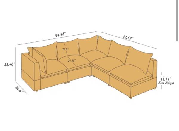 The set comes in 5 modular pieces that can be rearranged to fit your space. Easy to move and super versatile! All covers are super easy to remove and are machine washable.