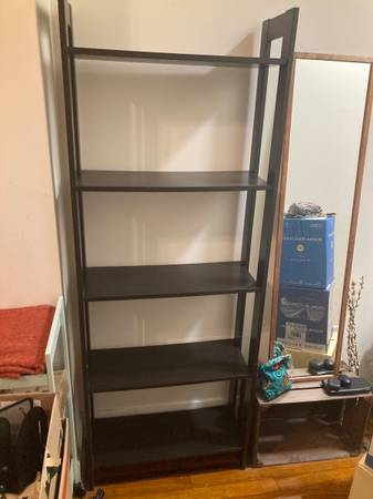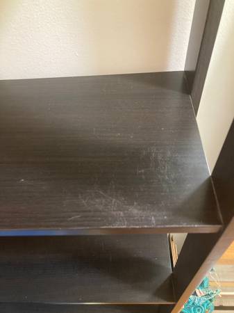 IKEA Laiva bookcase. In good condition with minor scratches on one shelf (the underside is also finished if you want to flip it over). I didn’t add the backing boards because I preferred the look without them. The boards will be included. For sale because I’m moving and don’t want to bring along.