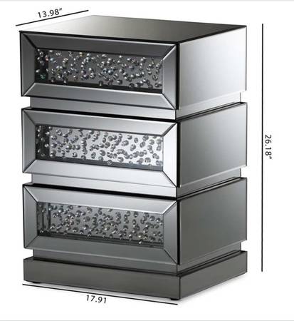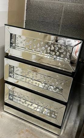 • Mirrored 3-drawer side table or nightstand. It's gorgeous, but we're moving and can't ship it with us.