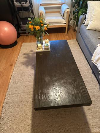 Stylish and sturdy Crate & Barrel coffee table in excellent condition. Solid wood with a dark espresso finish Modern, minimalist design with clean lines Dimensions: 47" L x 24" W x 17" H...