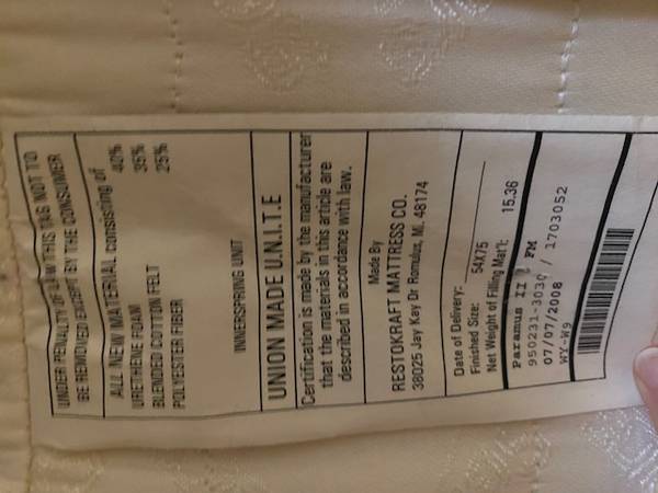 Double bed mattress in excellent condition. I've had it in my guest room for about 6.5 years, so it's probably nine or ten years old. It's very clean, though, and in great condition! It's a fairly...