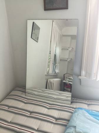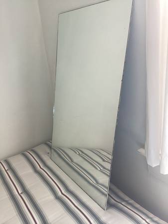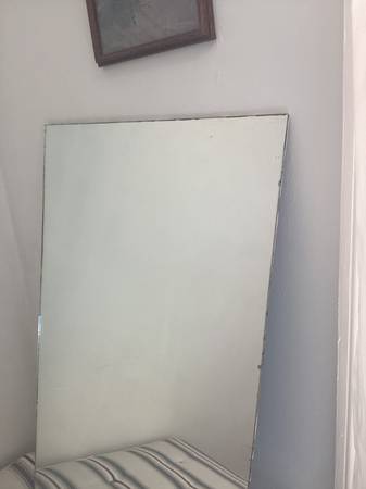 This is a large (24 x 40”) wall-mounted mirror in excellent condition, with mounting hardware included. It has no chips or flaws and is good quality, quite heavy.