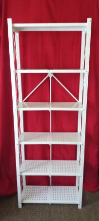 White Origami Foldable Steel 6-Tier Bookshelf NEW IN BOX (THREE AVAILABLE) 24"L x 10-5/8"W x 65-3/4"H Weight capacity per shelf, without feet: 70 lbs. - 420 lbs. total Weight capacity per shelf,...