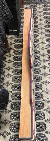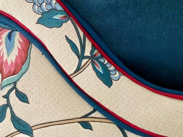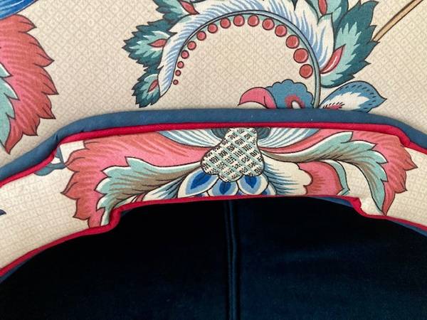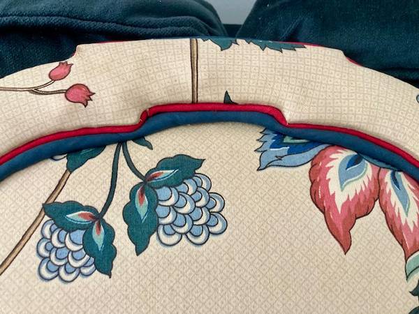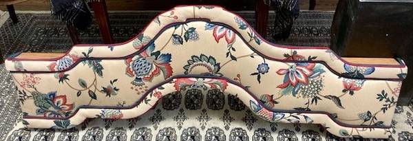 beautiful valance over your window casing(s). left from estate. very decorative fabric with intricate piping. see photos. 58" wide. 4.5" deep. 20" tall at its peak.