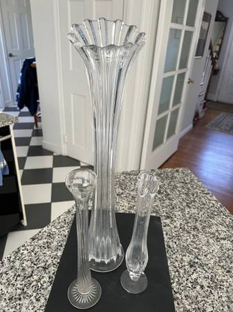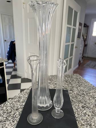 3 clear swung glass vases 11”-19” - household items - by owner -...