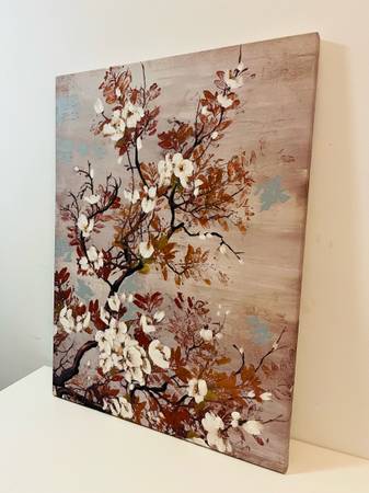 Beautiful, large cherry blossom canvas print - “Cereja Flor” by Bridges from World Market. Being on a stretched canvas/3D gives a great quality to any space it is hung in. For cash/pickup